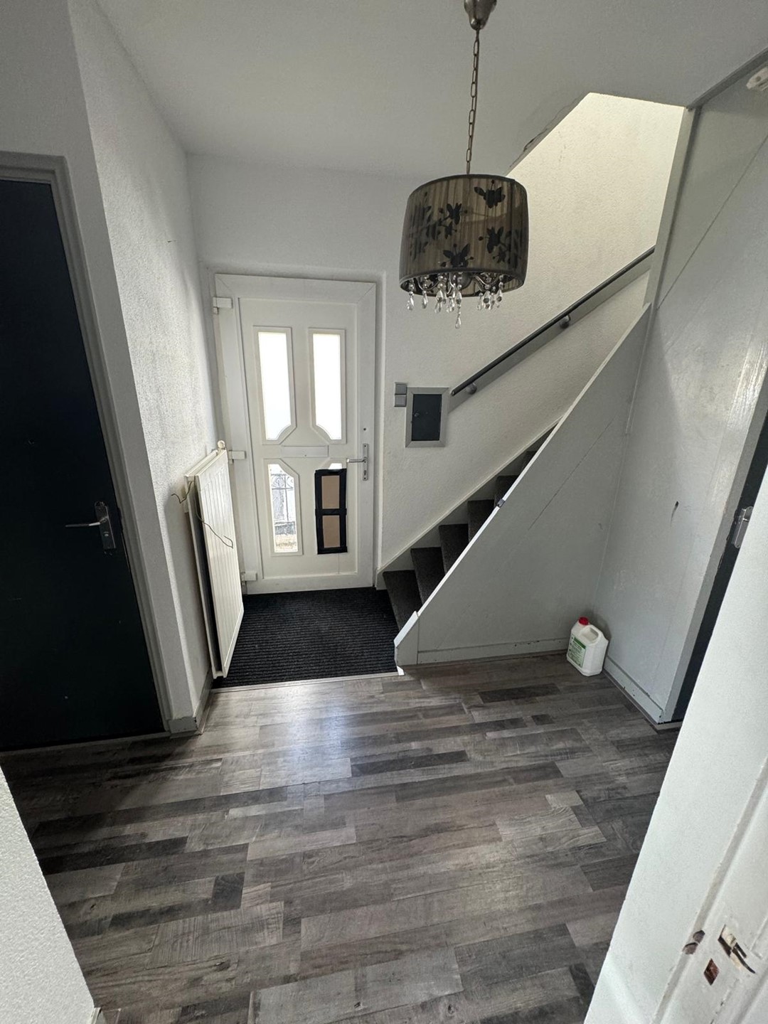 Entree, hal, toilet, ruime woonkamer (ca. 30 m2) met open keuken voorzien van gaskookplaat,