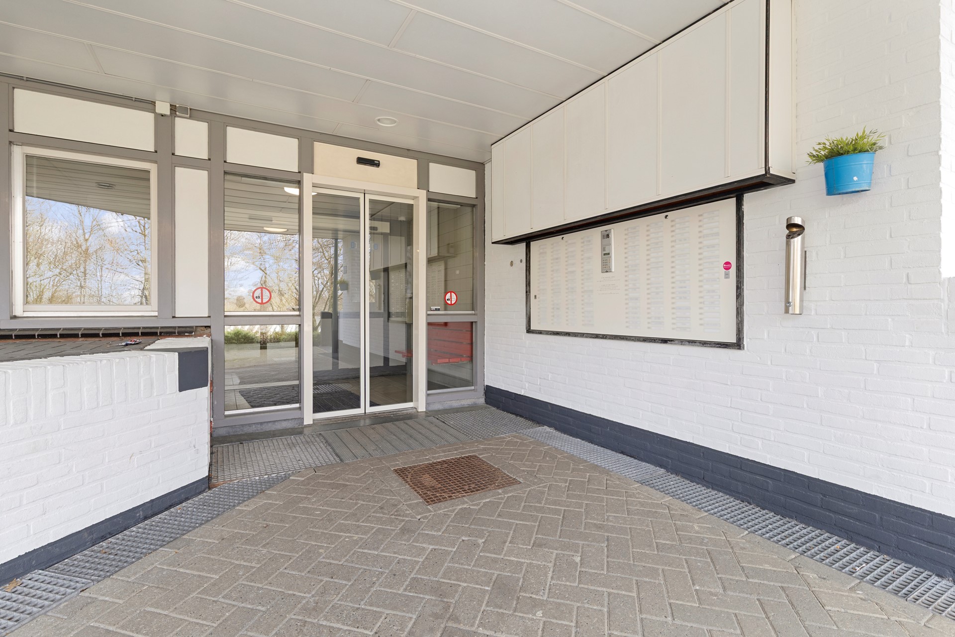 Begane grond: Gezamenlijke entree met o.a. brievenbussen, bellentableau, trappenhuis, huismeesterpost en dubbele liftinstallatie. Tevens is er voldoende parkeergelegenheid en een gezamenlijke fietsenstalling aanwezig.