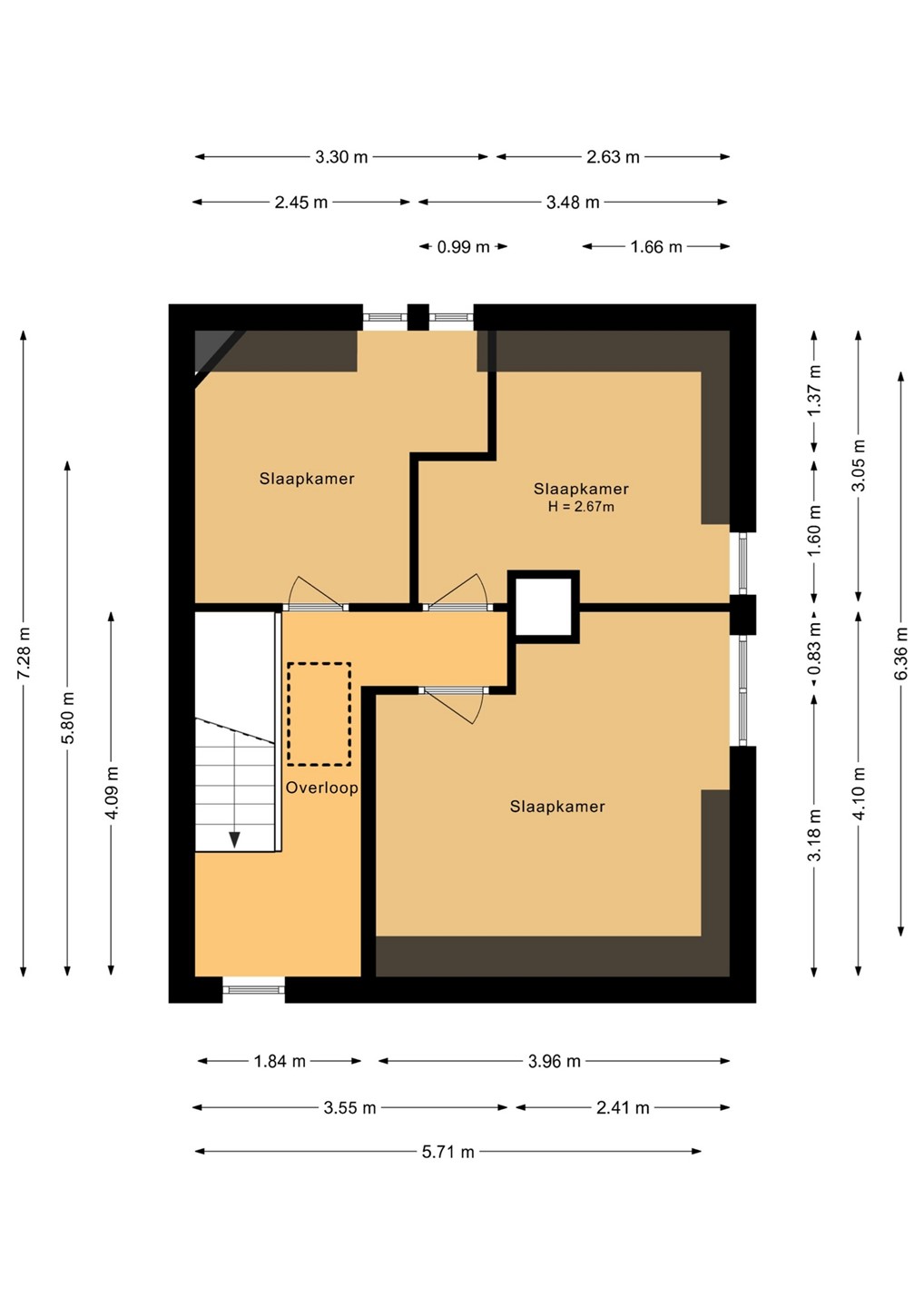 3 slaapkamers.