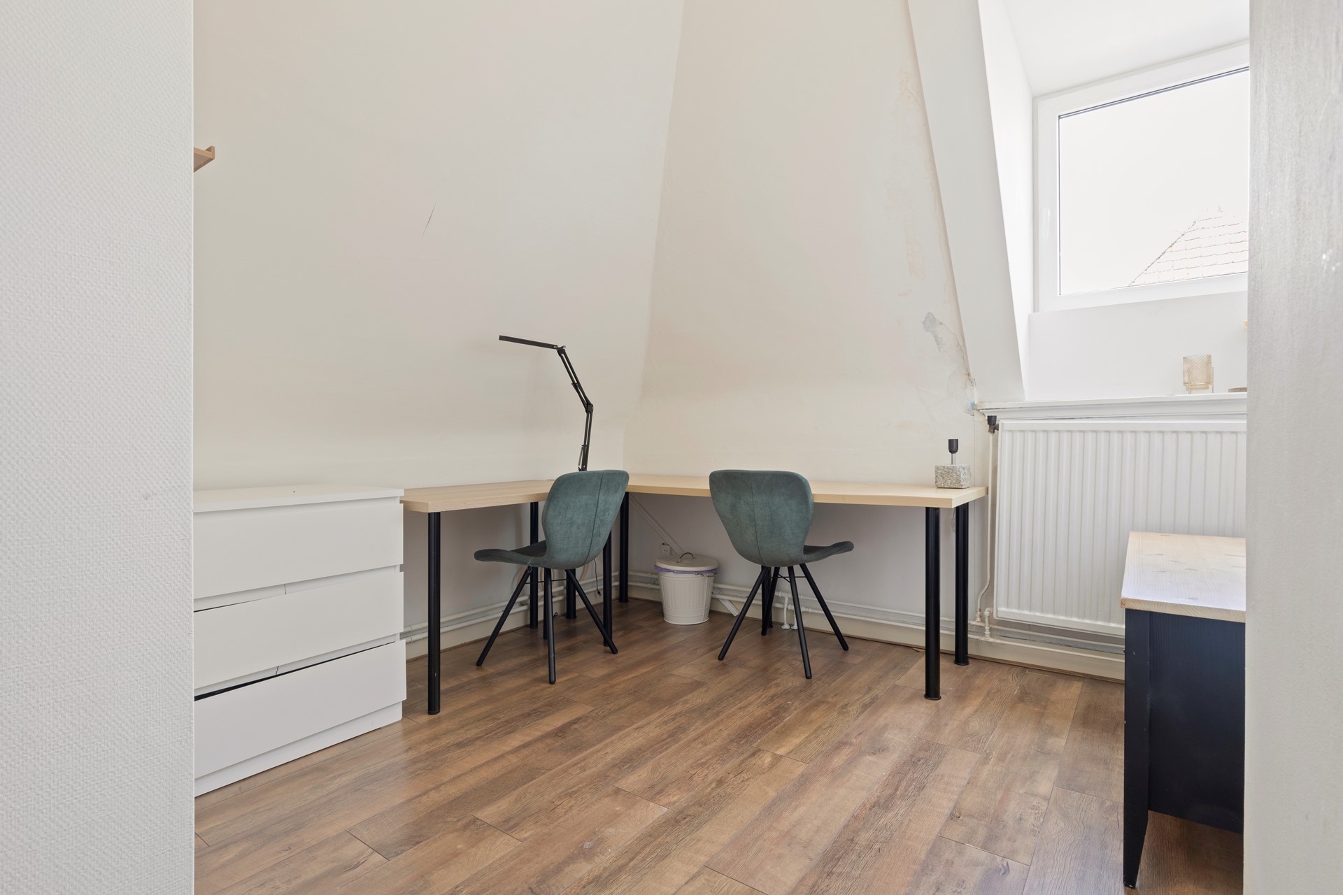 Slaapkamer 3 voorzien van een laminaatvloer en dakkapel