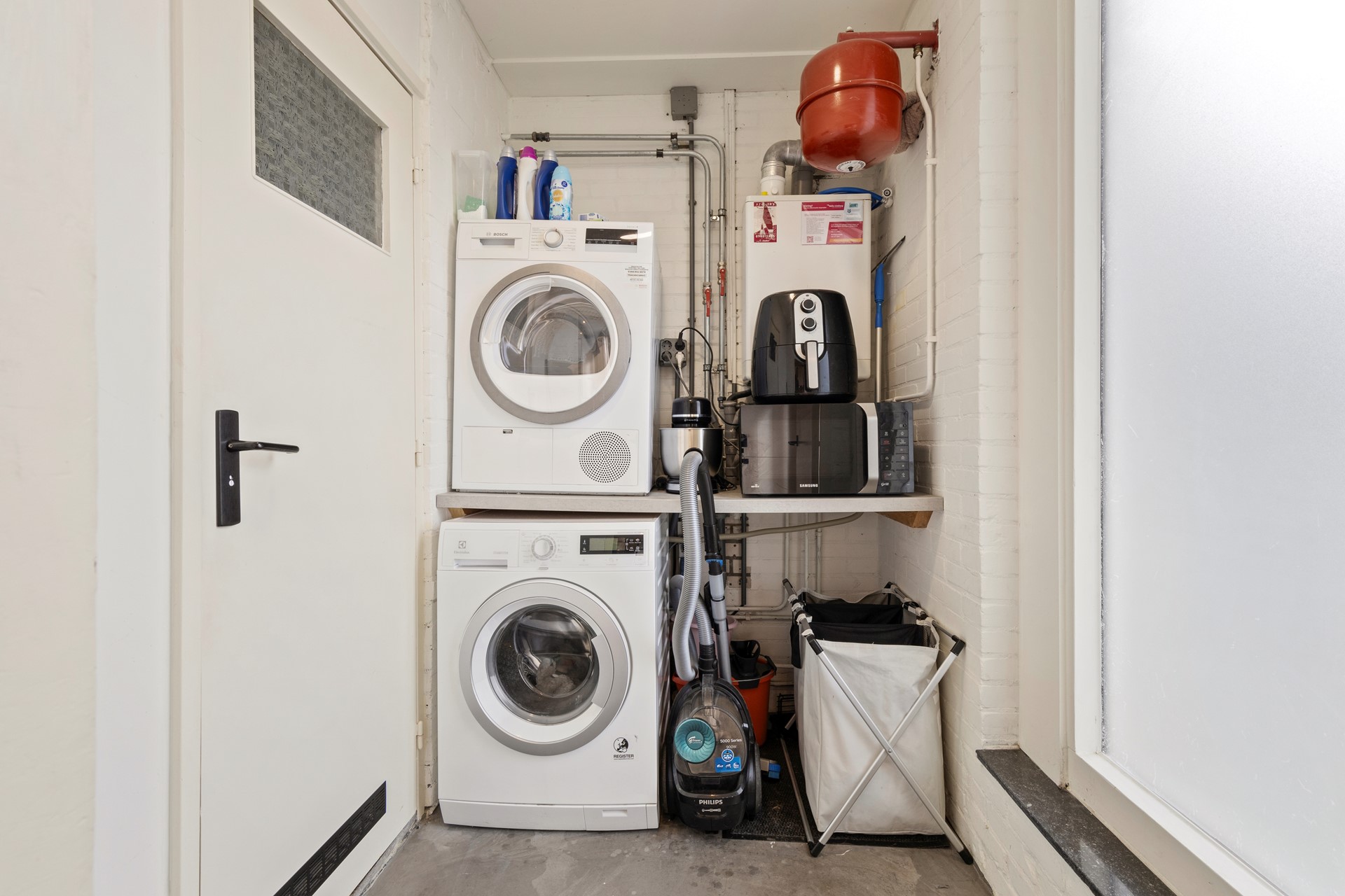Bijkeuken met aansluitingspunten voor wasmachine en droger en standplaats C.v.-combi installatie, eigendom).