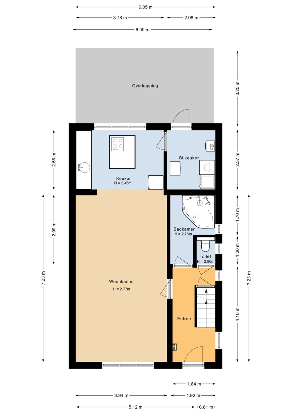 - Goede mogelijkheid om de badkamer te verplaatsen naar de 1e verdieping