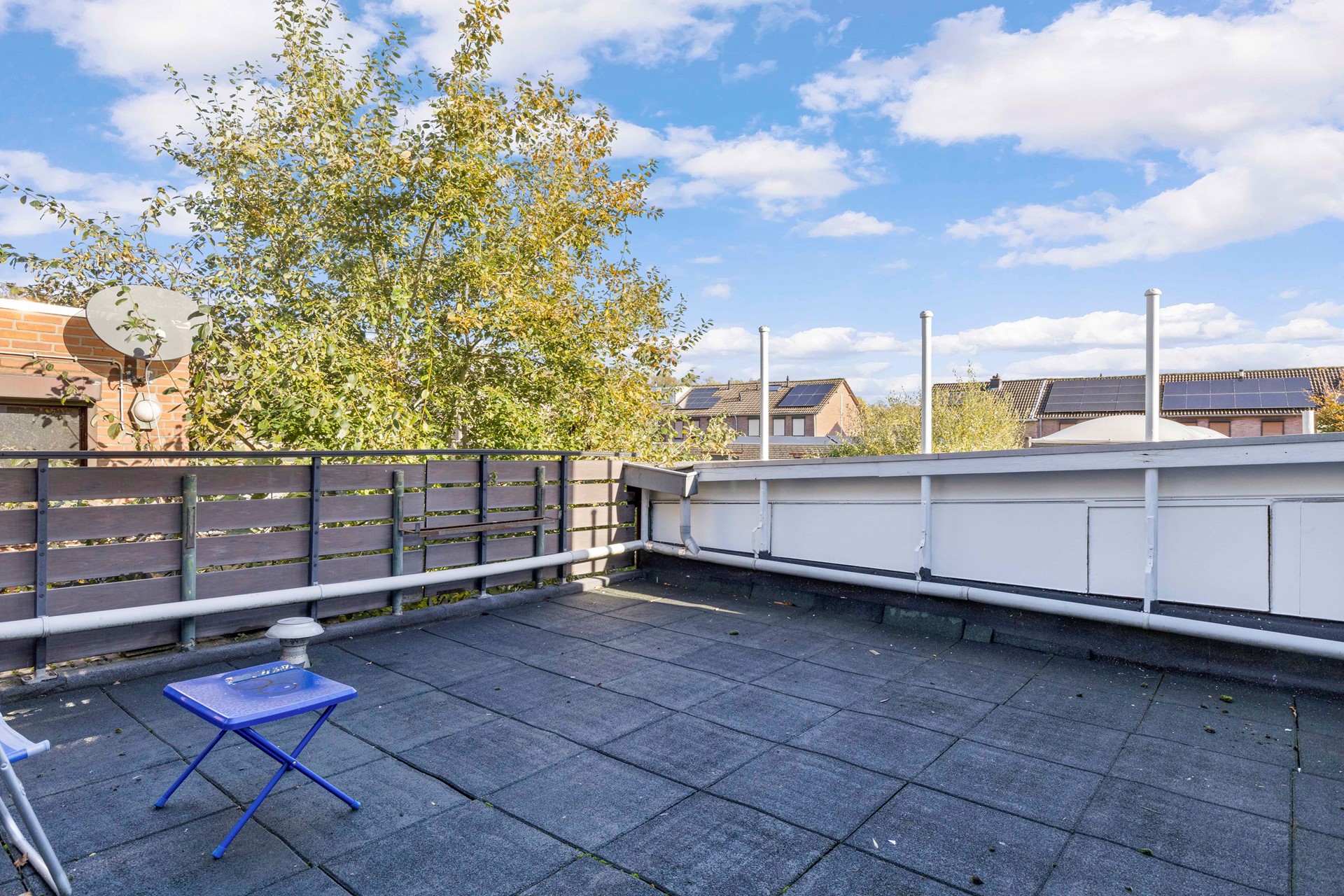 • Het huis heeft een dakterras. Er is geen tuin!. Het perceel is geheel bebouwd.