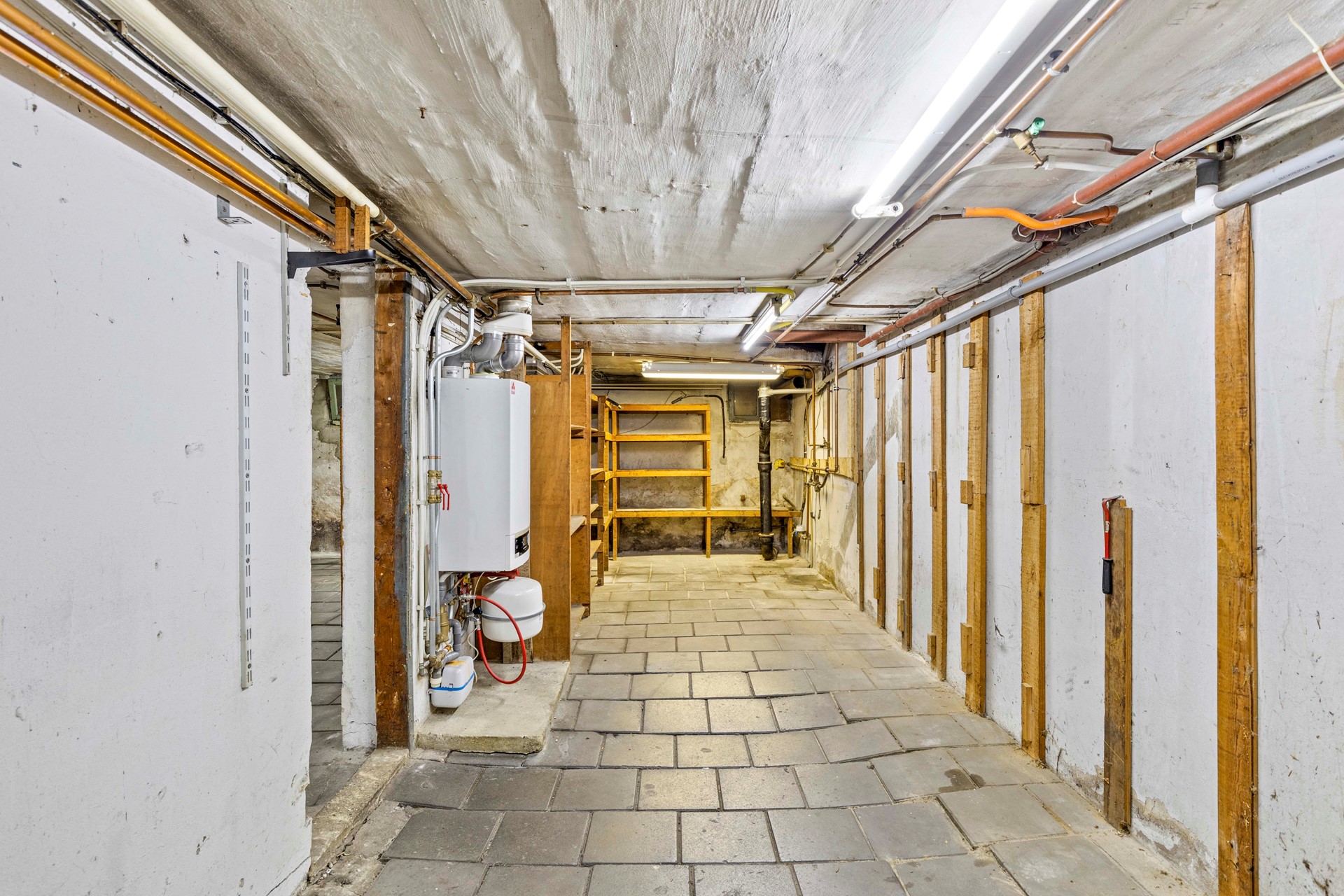 Het huis heeft 2 royale kelderruimtes met aansluiting voor de was-apparatuur en cv-installatie (huur).