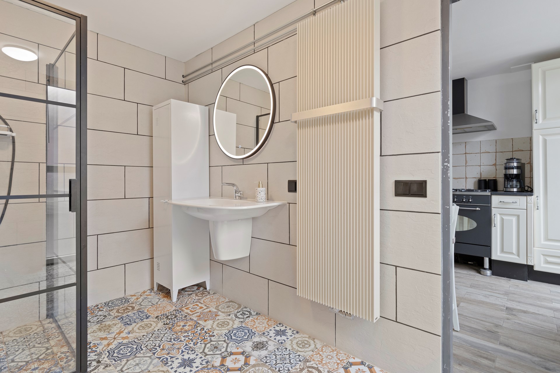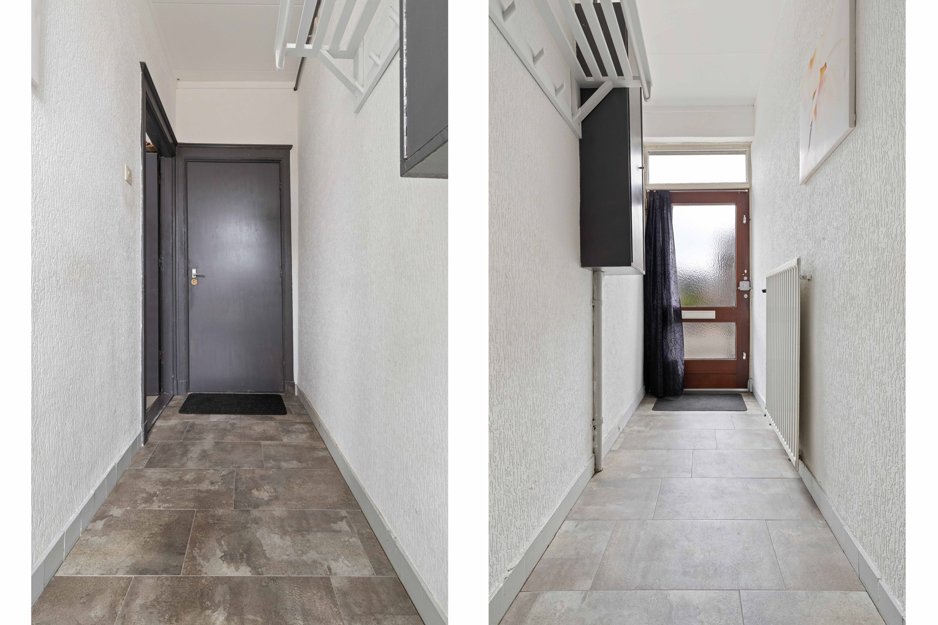 Hal/entree met plavuizenvloer, meterkast en toegang provisiekelder.