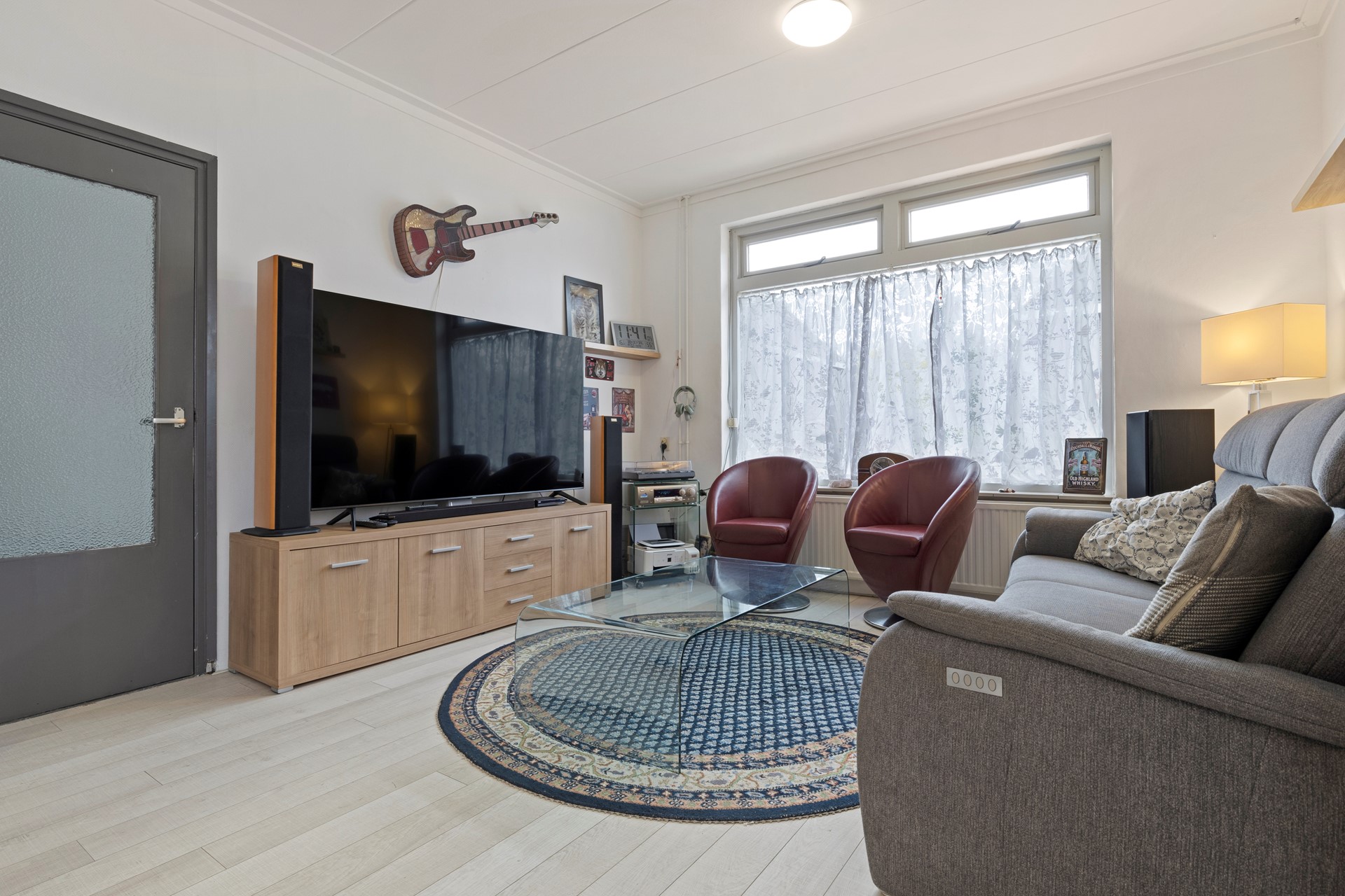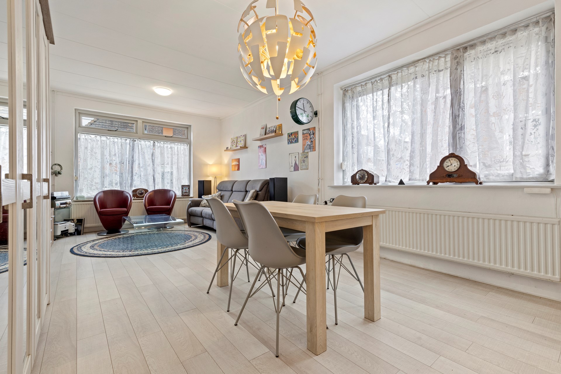 Woonkamer v.v. een lichte laminaatvloer 7.24 x 3.81