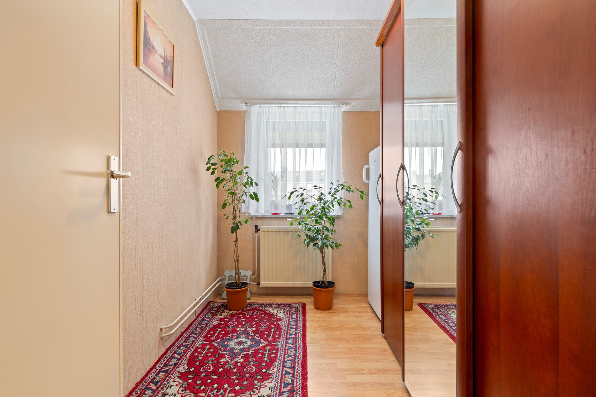 Slaapkamer 2 v.v. een laminaatvloer en rolluiken.