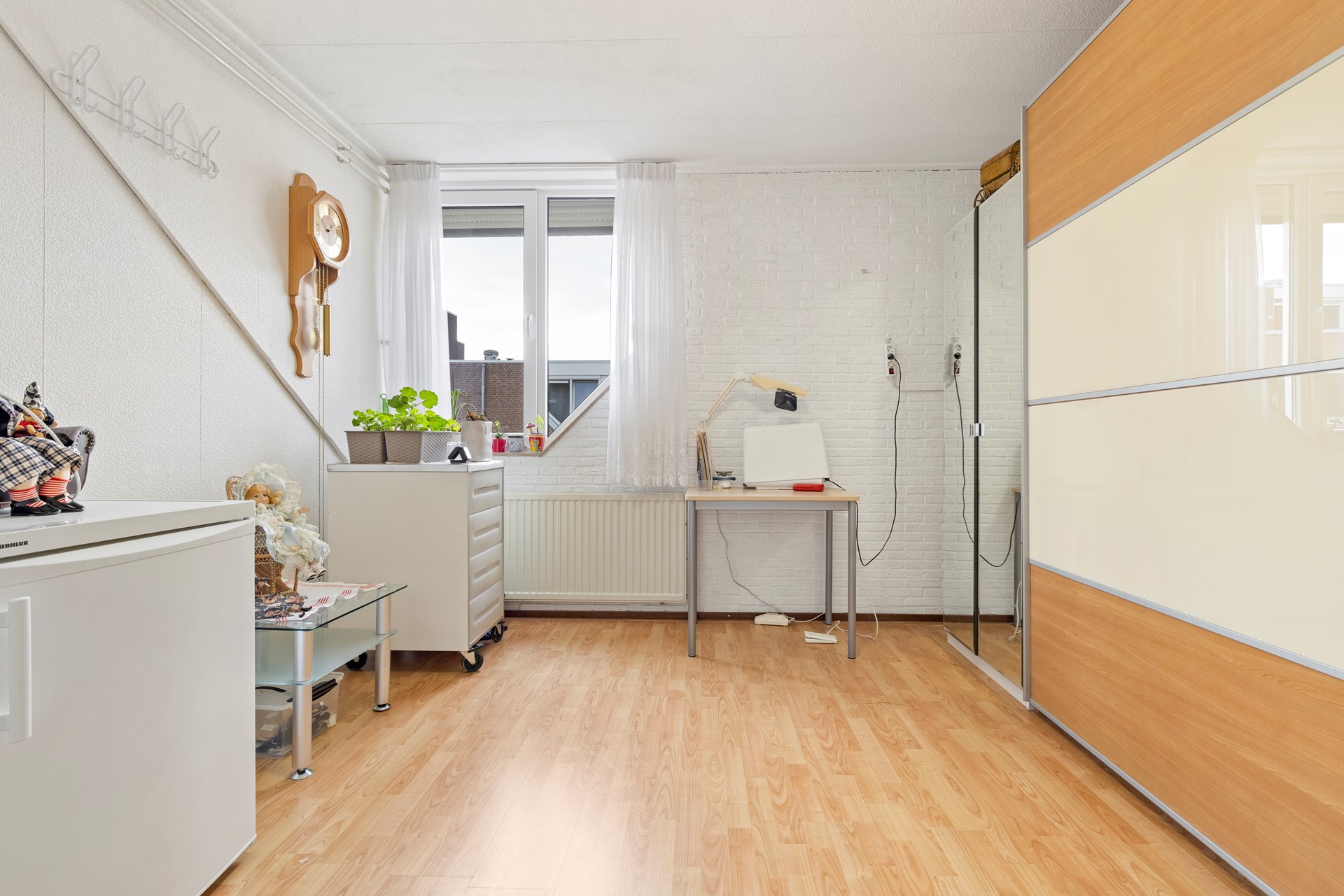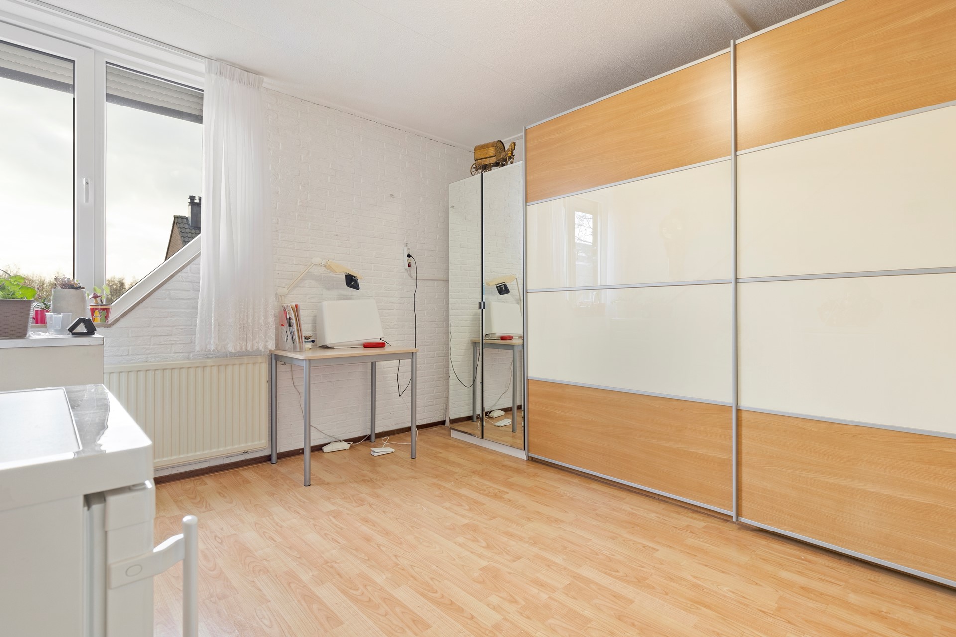 Slaapkamer 3 v.v. een laminaatvloer en rolluiken.