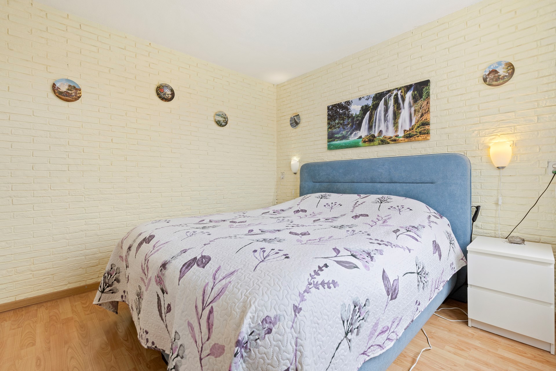 Slaapkamer 1 v.v. een laminaatvloer en rolluiken.
