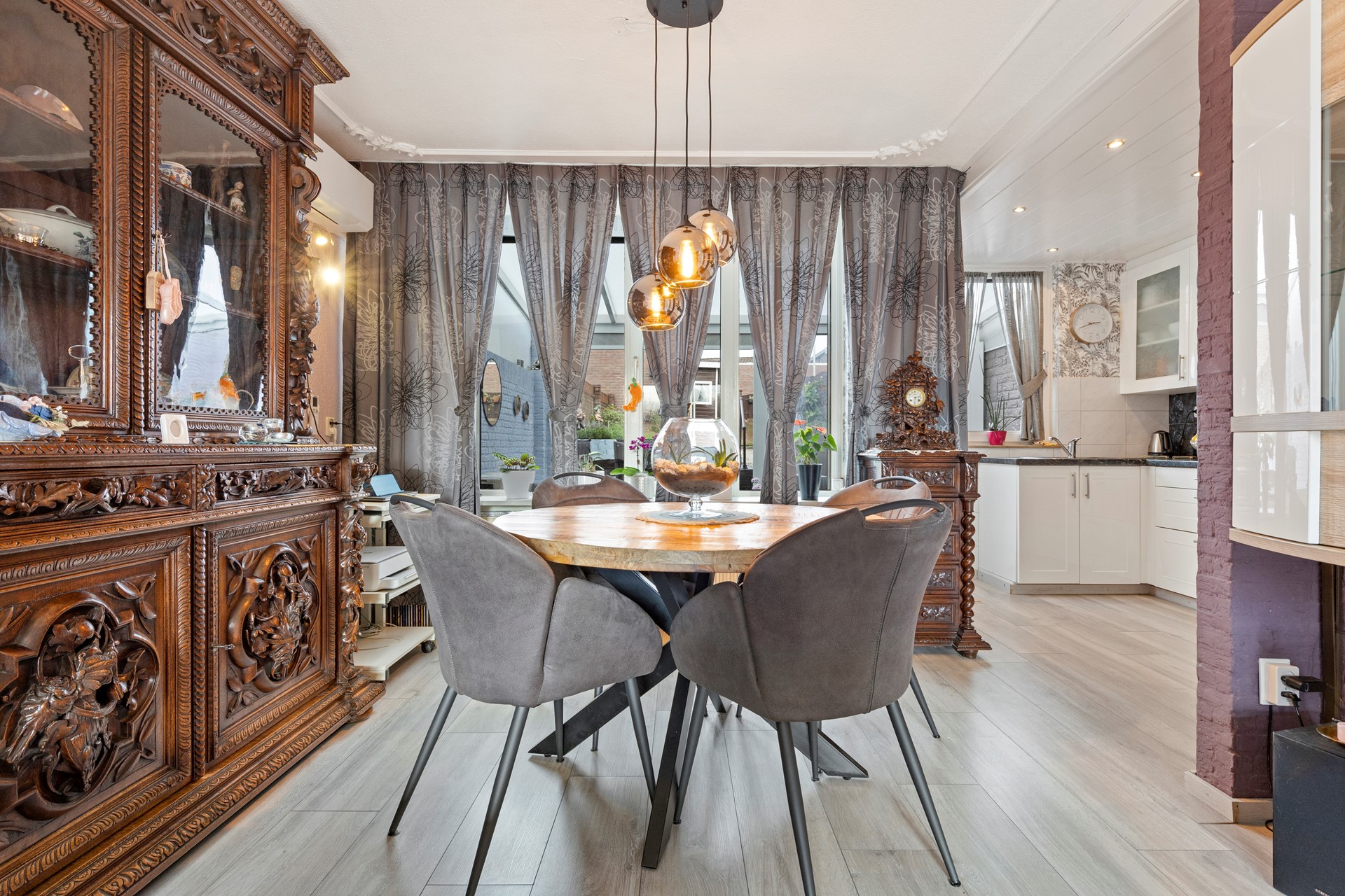 Woonkamer voorzien van fraaie laminaatvloer en airconditioning.
